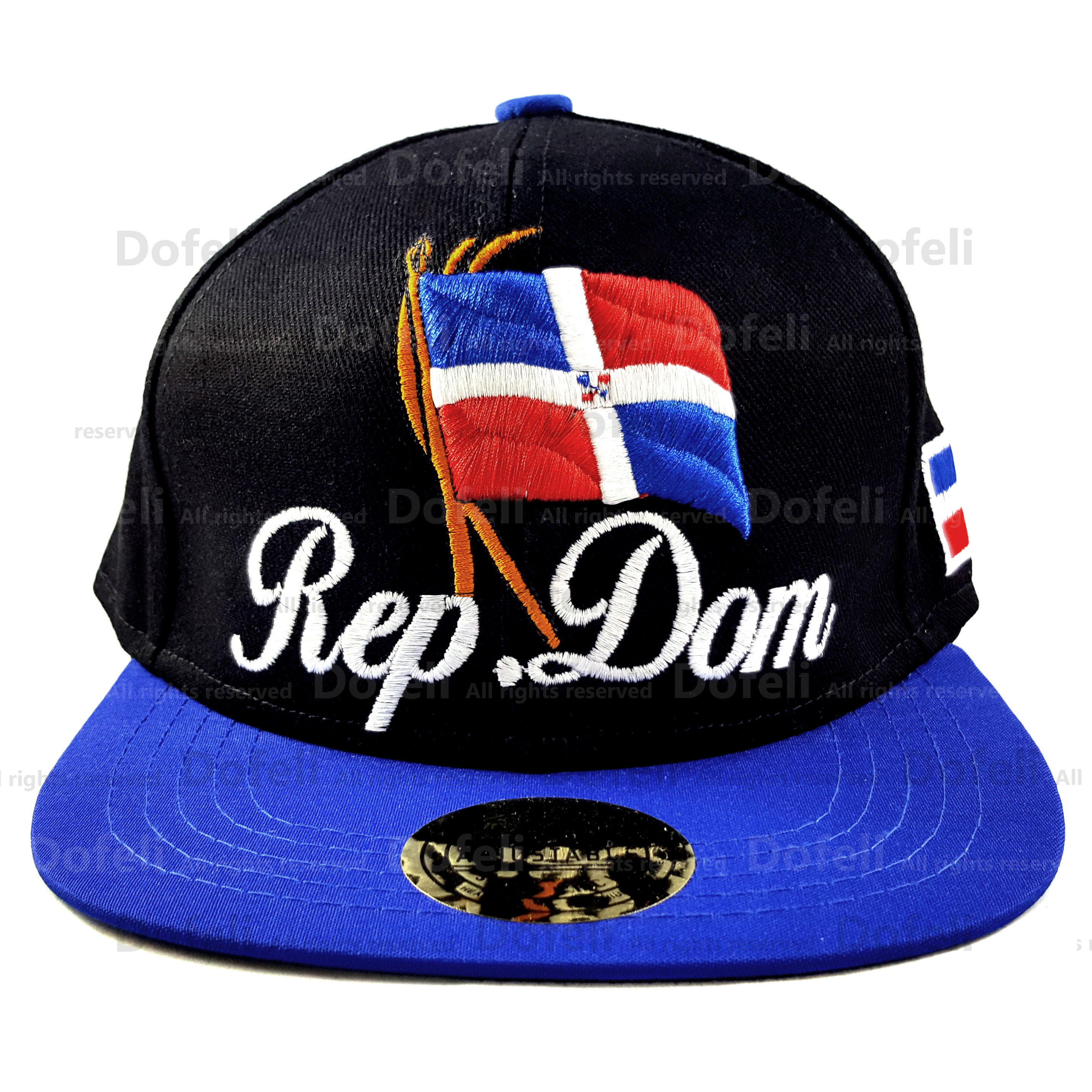 Beautiful cap representing the Dominican Republic with the writings of “Rep. Dom.” (abbreviation of the country name in Spanish) and its stunning design of its flag.