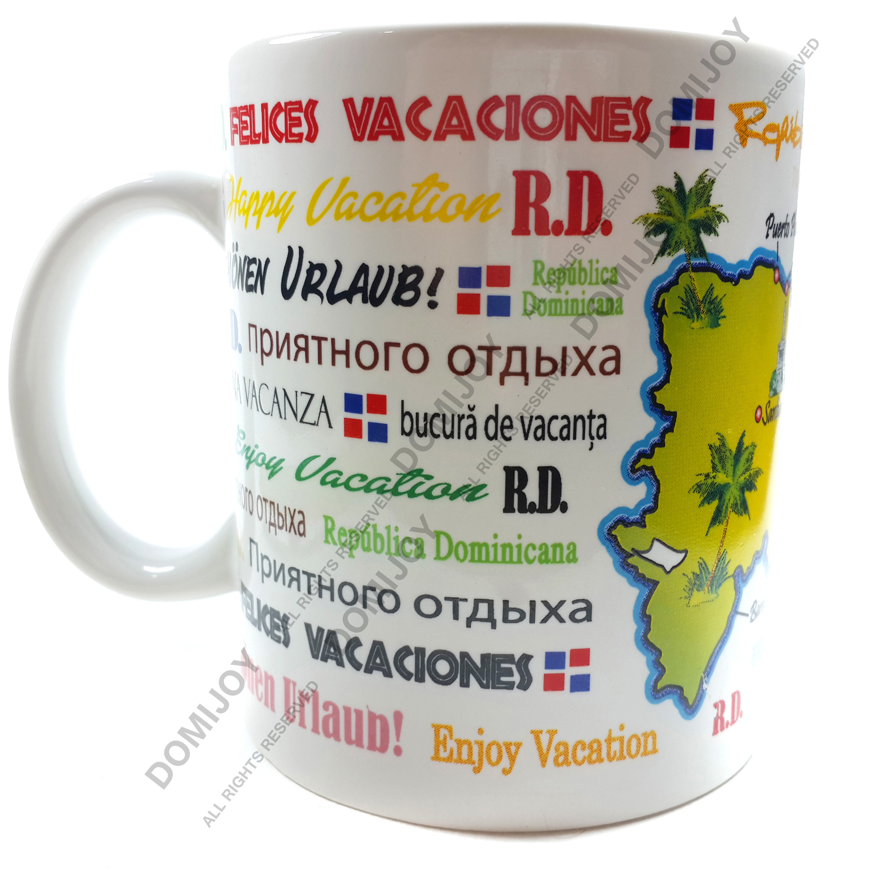 - Mug with typical designs of Dominican Republic (in this case among other symbolic images, you can see the map of our part of the island).