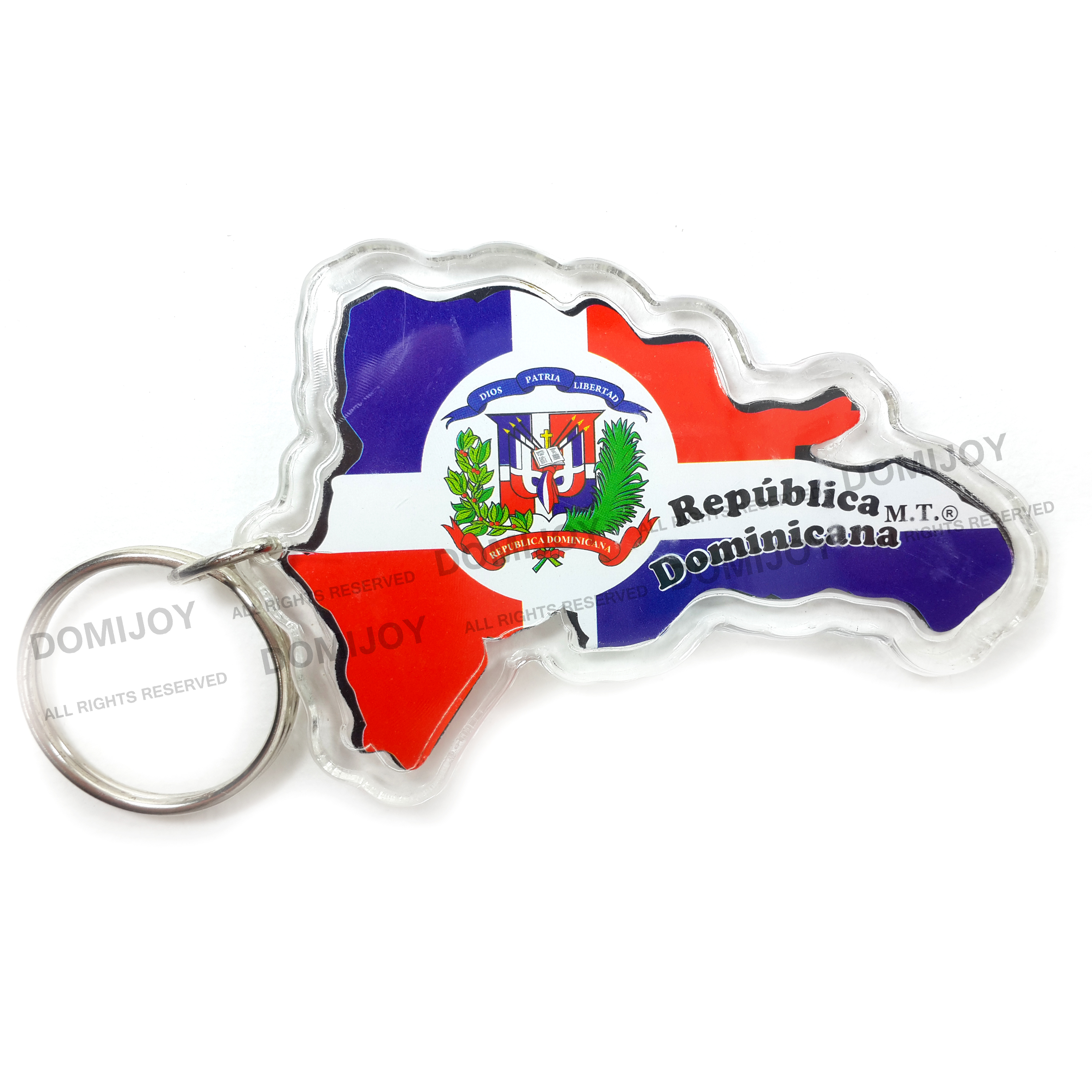 - Very original Key chain with the shape of the Dominican country island with typical designs (flag and shield).