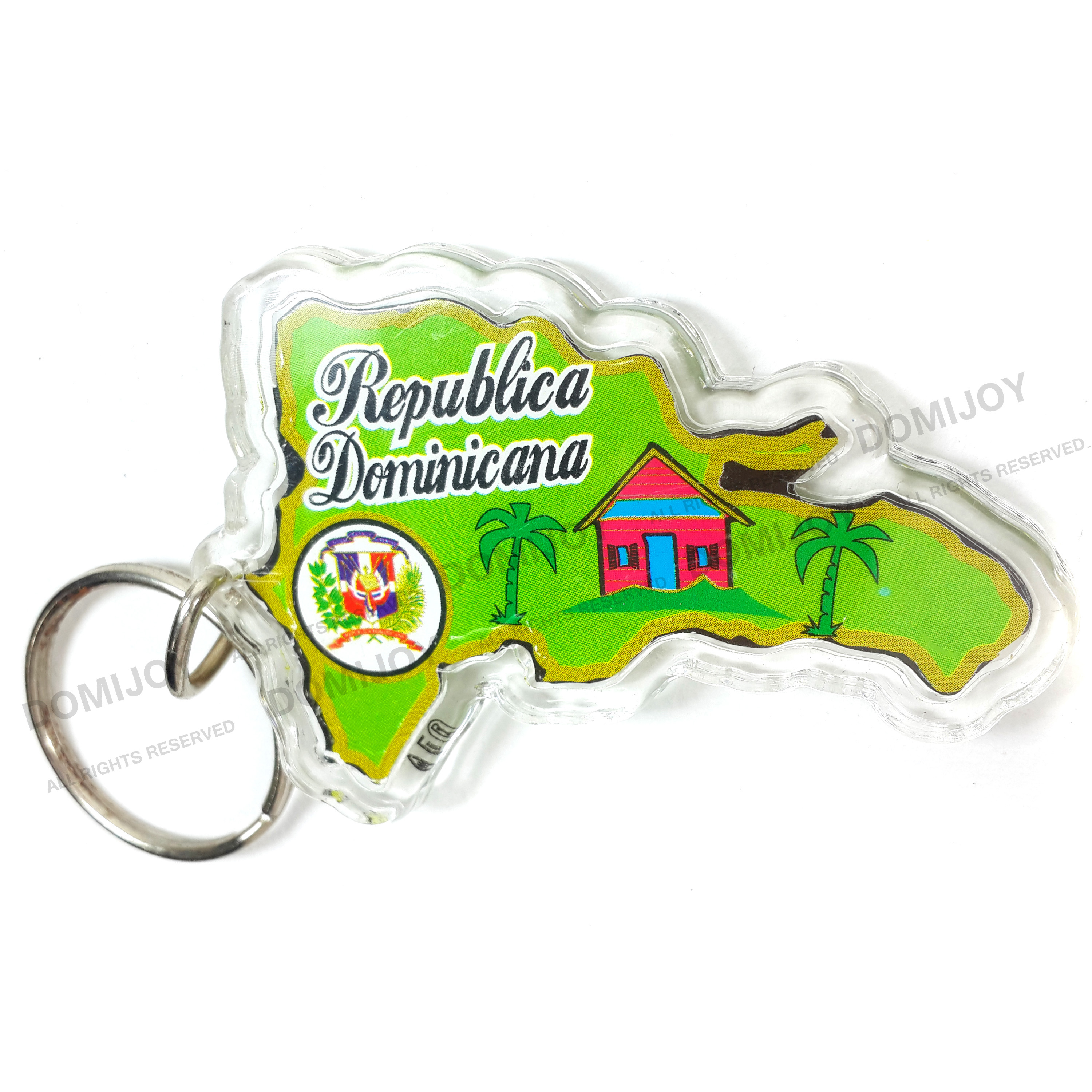 - Very original Key chain with the shape of the Dominican country island with typical designs (big countryside house).