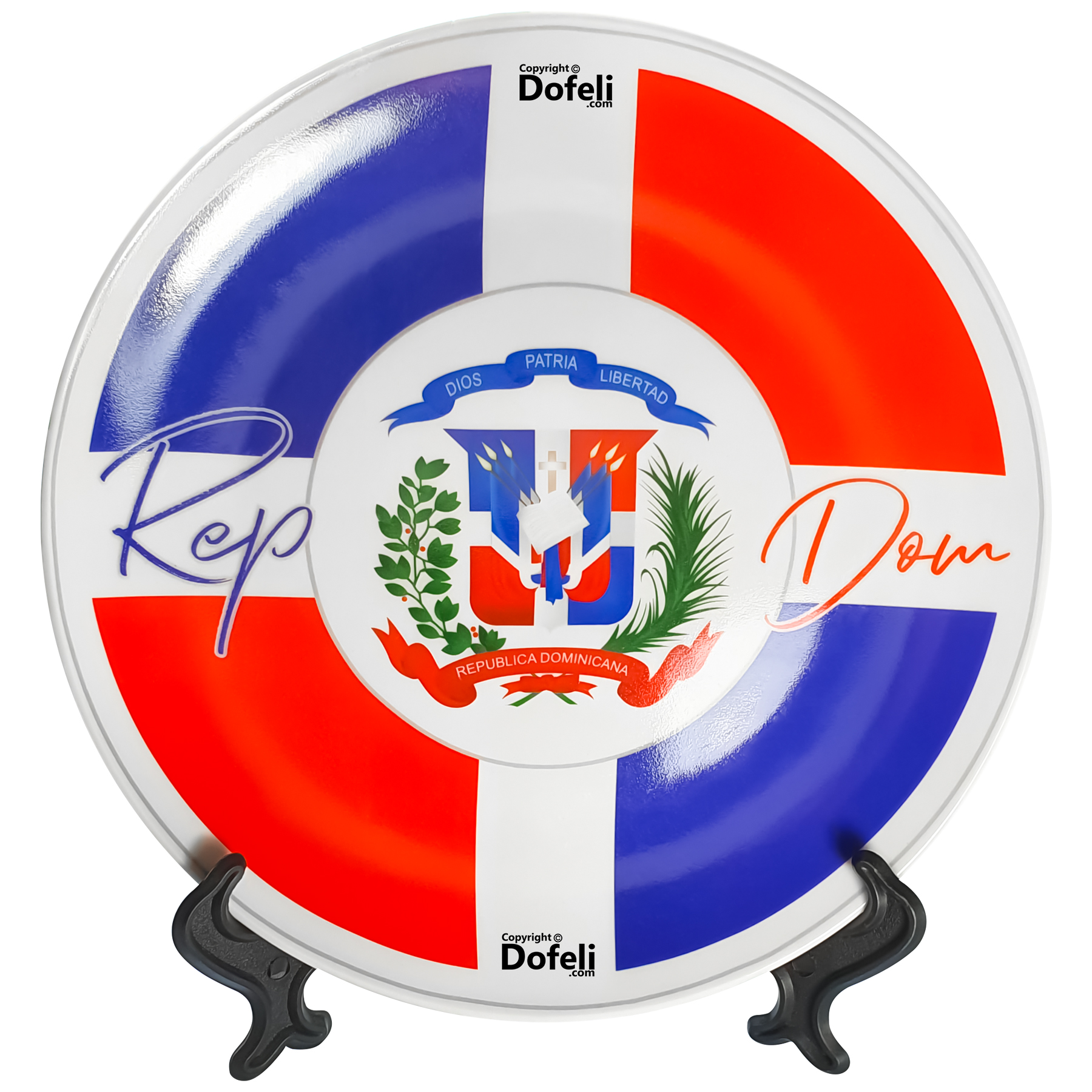 Dominican good-looking decorative porcelain plate with the flag and shield design.